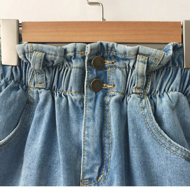 Product Name: 2018 été taille haute Denim Shorts femmes décontracté lâche dames mode retrousser ourlet élastique taille poche bleu blanc Jeans femme