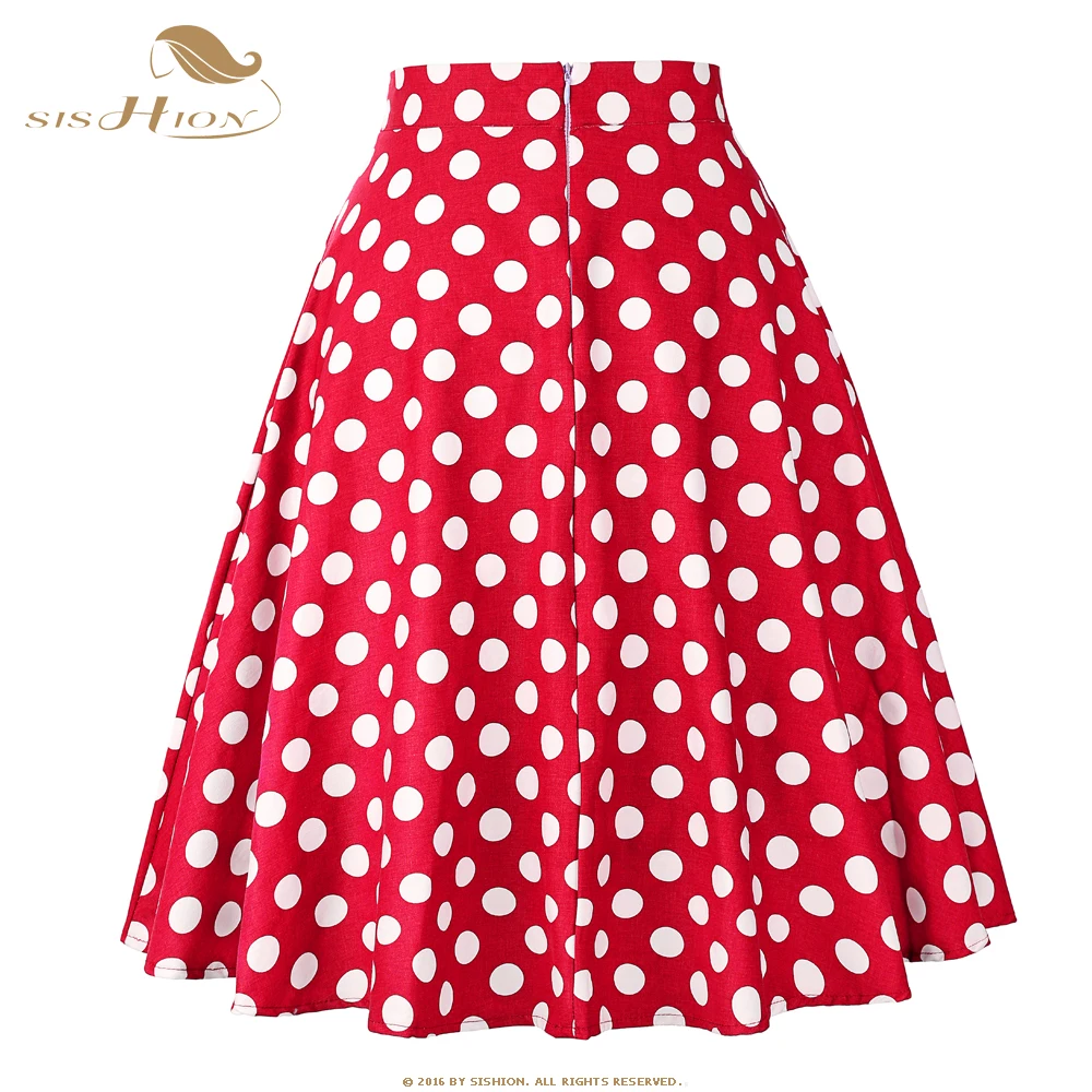 Special Offer SISHION coton à pois jupes 2019 taille haute femmes coton rouge avec des points blancs balançoire rétro balançoire Vintage Midi jupes VD0020 Discount 30% Today!