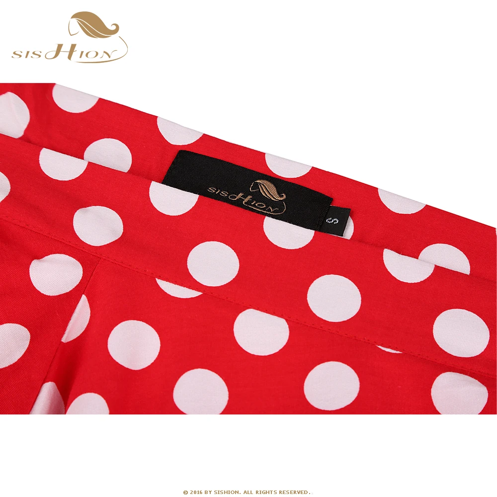 Product Name: SISHION coton à pois jupes 2019 taille haute femmes coton rouge avec des points blancs balançoire rétro balançoire Vintage Midi jupes VD0020