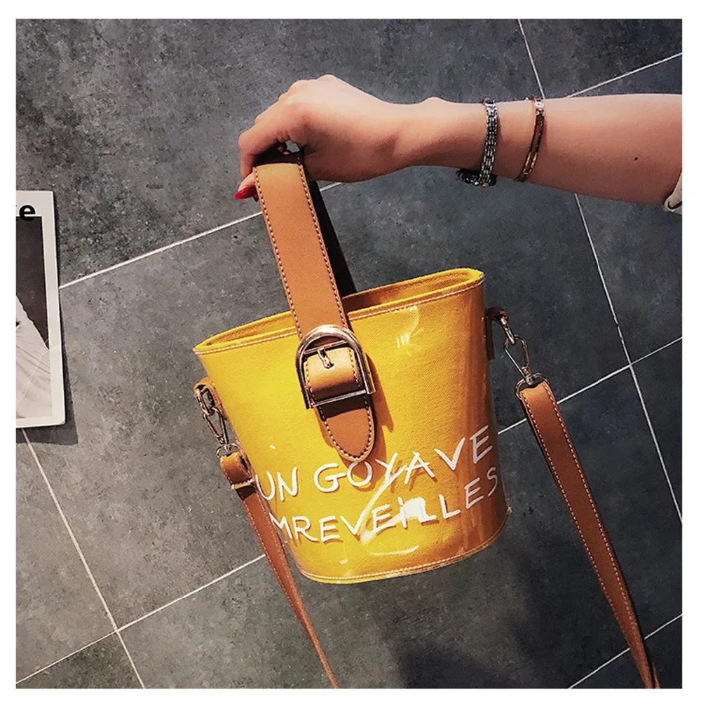 Product Name: 2019 nouveau été sac à bandoulière épaule PVC transparent gelée paquet coréen édition lettre sac à main unique épaule seau