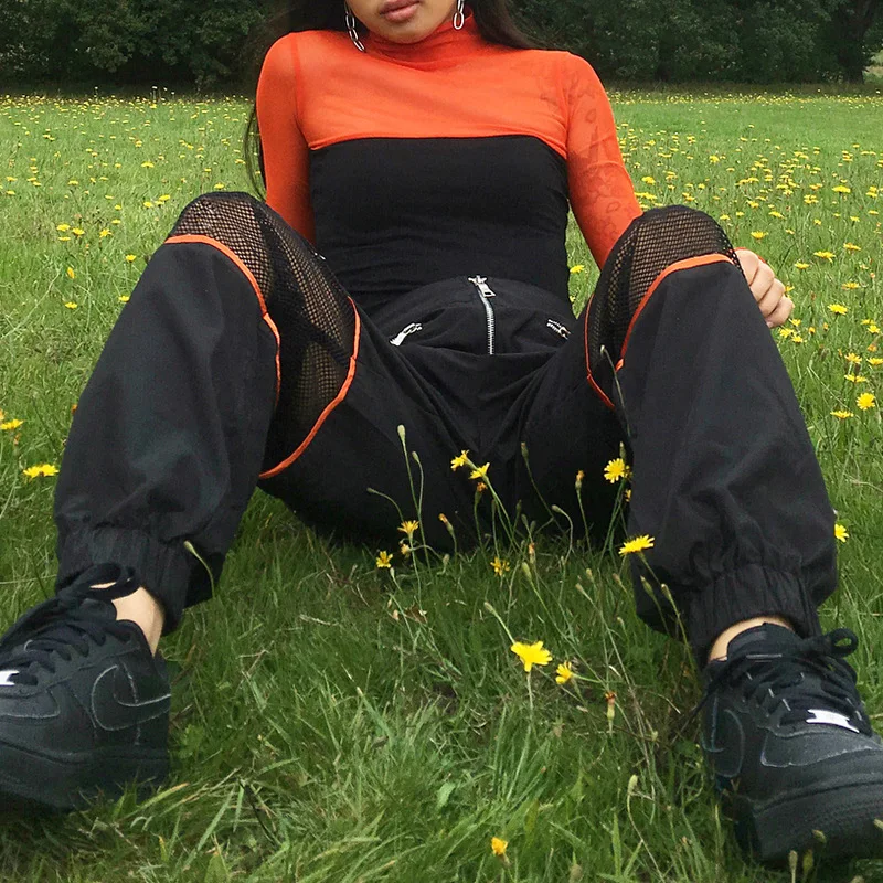 . (43% Off) Achat 2019 noir maille Patchwork Zipper survêtement Pantalon femmes lâche décontracté taille haute Pantalon femmes Streetwear Pantalon Hip Hop Pas Cher Prix.