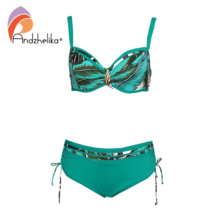 Special Offer Andzhelika haute qualité feuille imprimer maillot de bain bikini 2019 femmes perle bijoux Bikini ensemble grande taille maillots de bain plage maillot de bain Discount 46% Today!