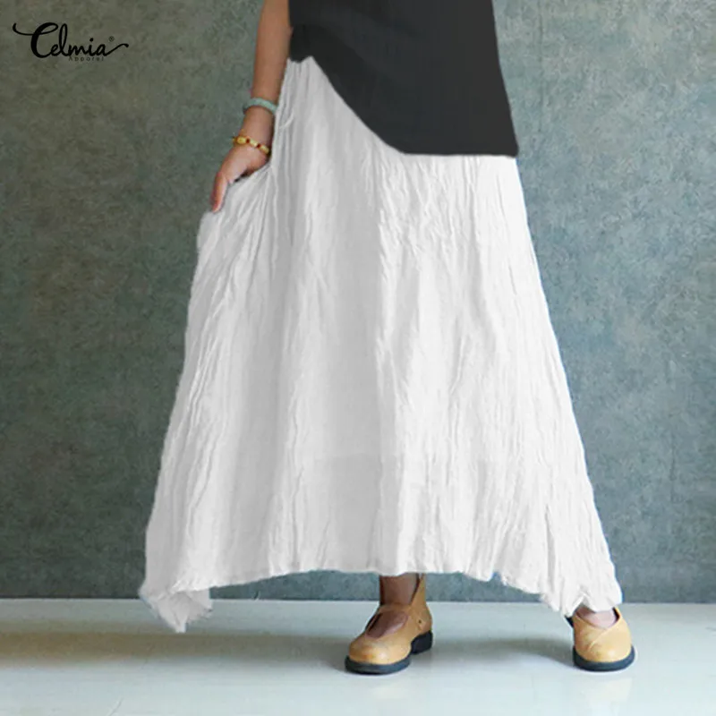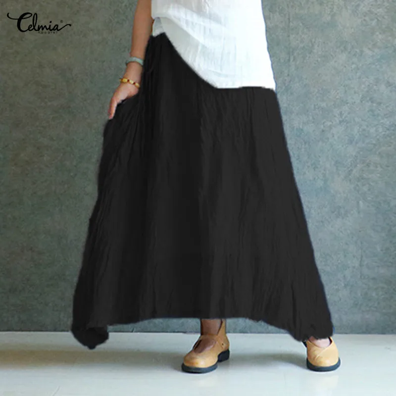 Special Offer 2019 été Celmia femmes Vintage lin jupes décontracté lâche solide longue jupe élastique taille plage plissée Maxi jupes grande taille Discount 46% Today!