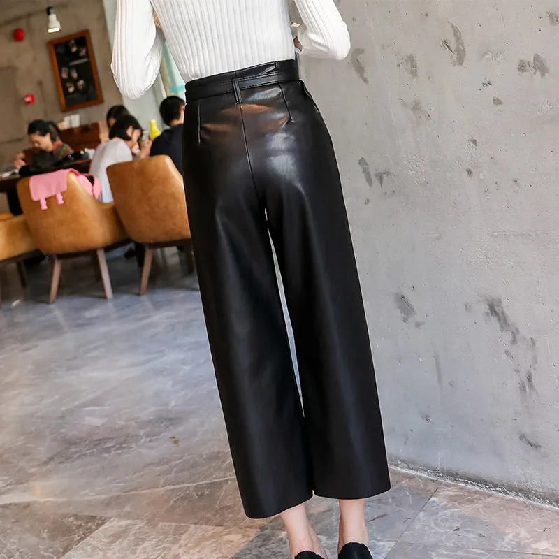 Special Offer Automne Faux PU cuir pantalon femmes avec ceinture taille haute jambe large Anke longueur femmes pantalons 2019 hiver nouvelle mode vêtements Discount 48% Today!