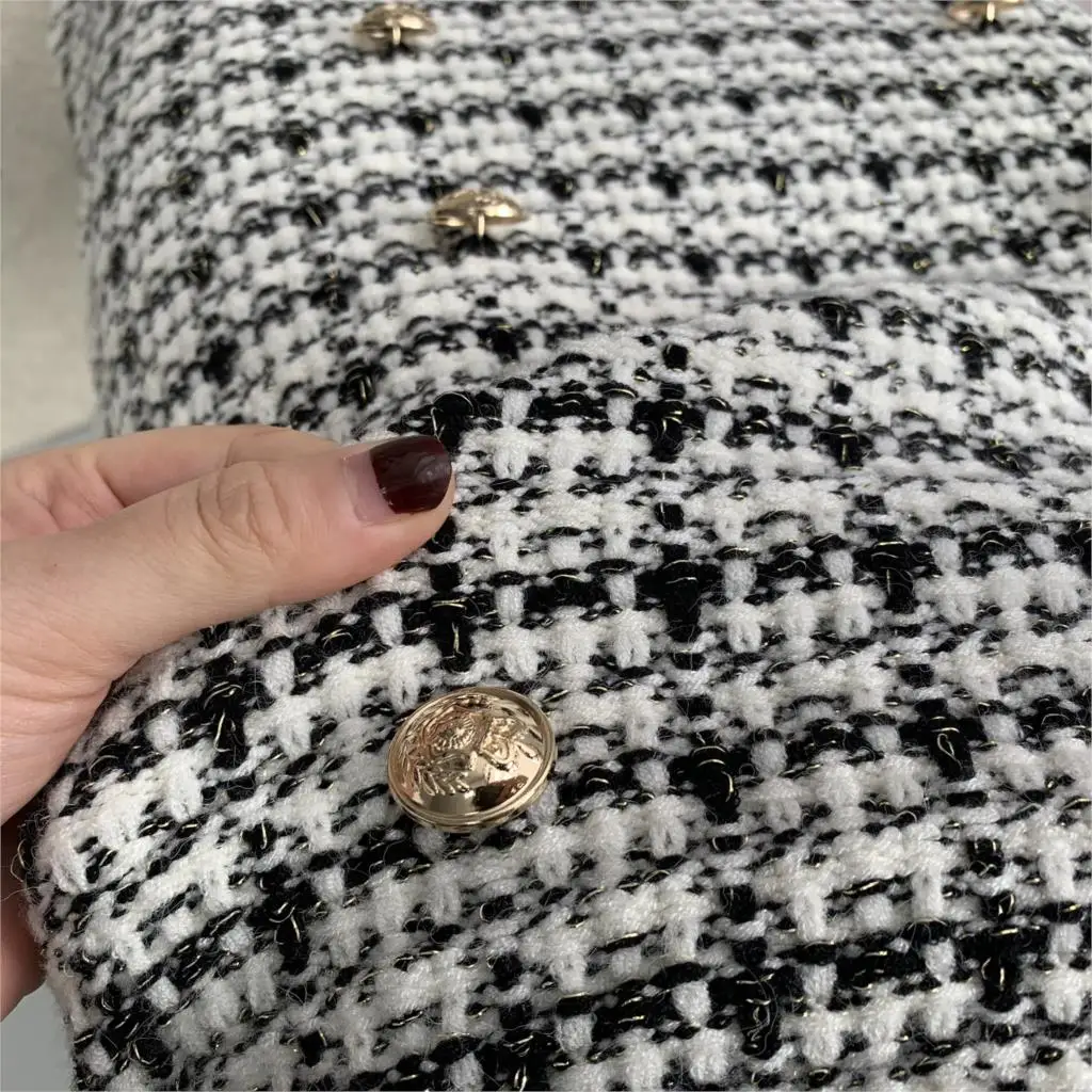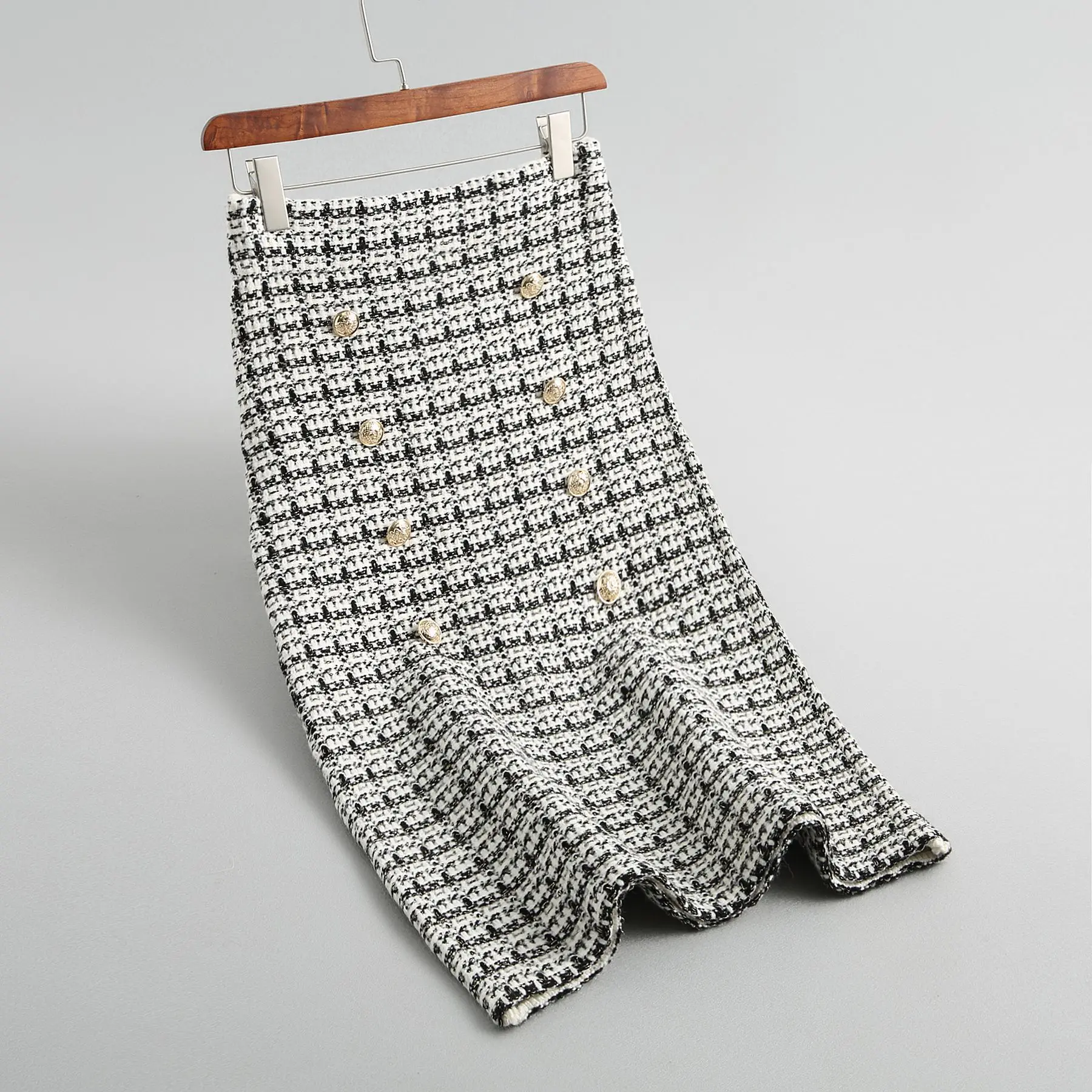 Product Name: 2019 printemps automne nouveau tweed femmes jupe élégant bureau Double boutonnage plaid tricoté Vintage paquet hanche midi jupe femme