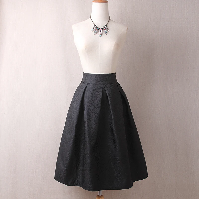 Product Name: Neophil 2019 hiver noir rouge Jacquard plissé robe de bal patineuse dames Midi jupes femmes grande taille tenue de bureau Tutu Saia S08044