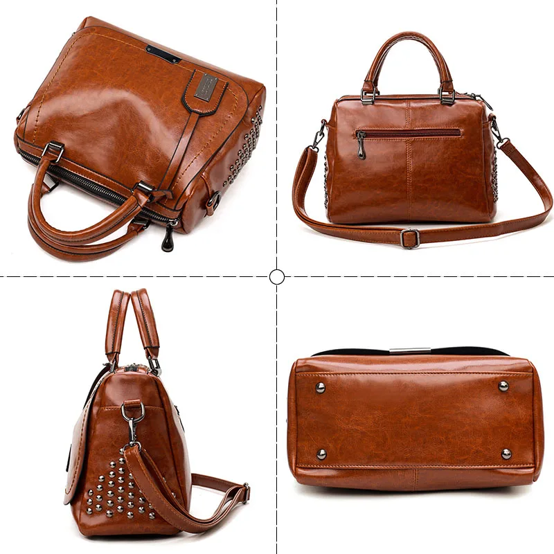 Product Name: Célèbre marque huile cire cuir Rivet Boston sac sacs à bandoulière pour femmes 2019 fourre tout sac à bandoulière de luxe sacs à main femmes sacs Designer