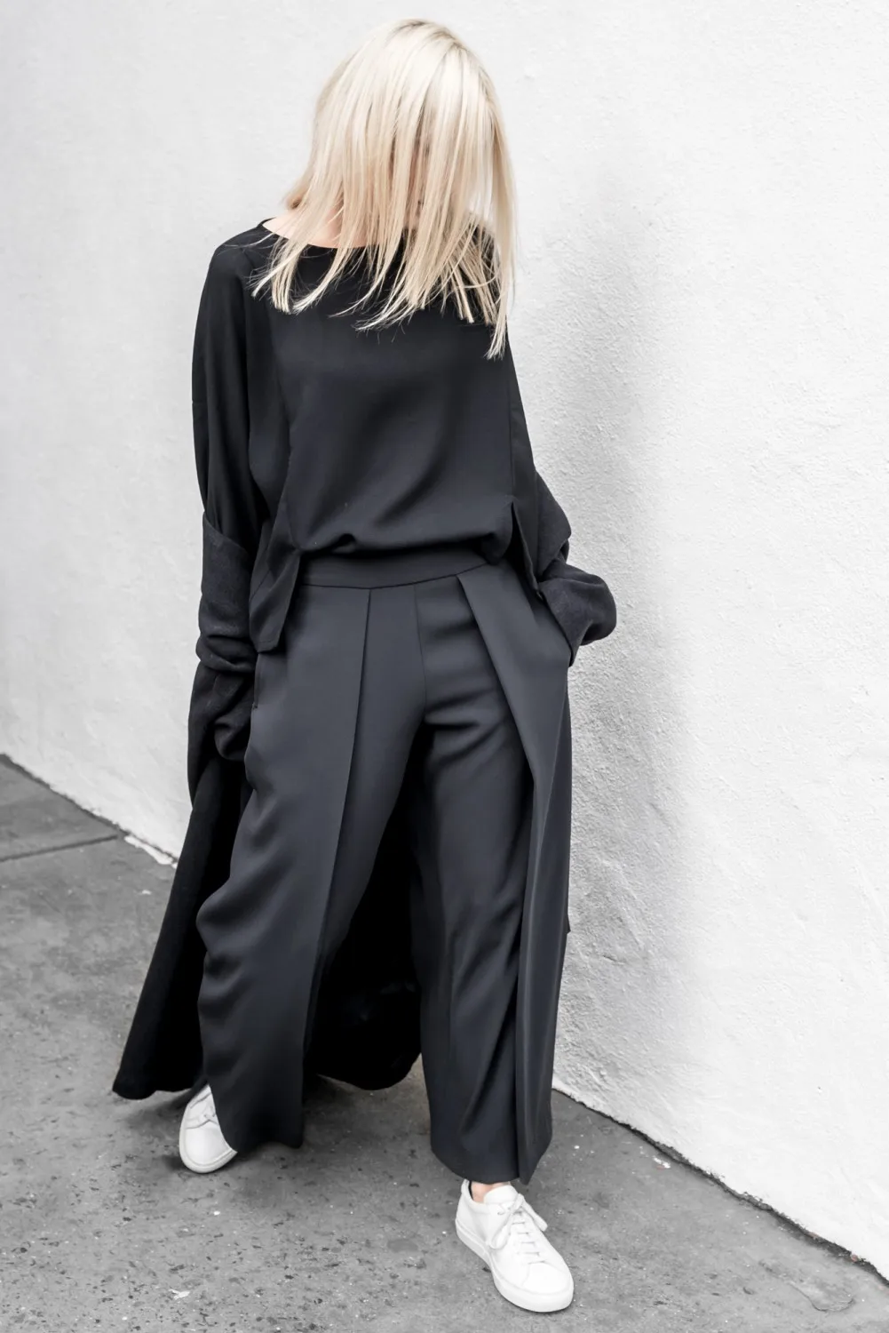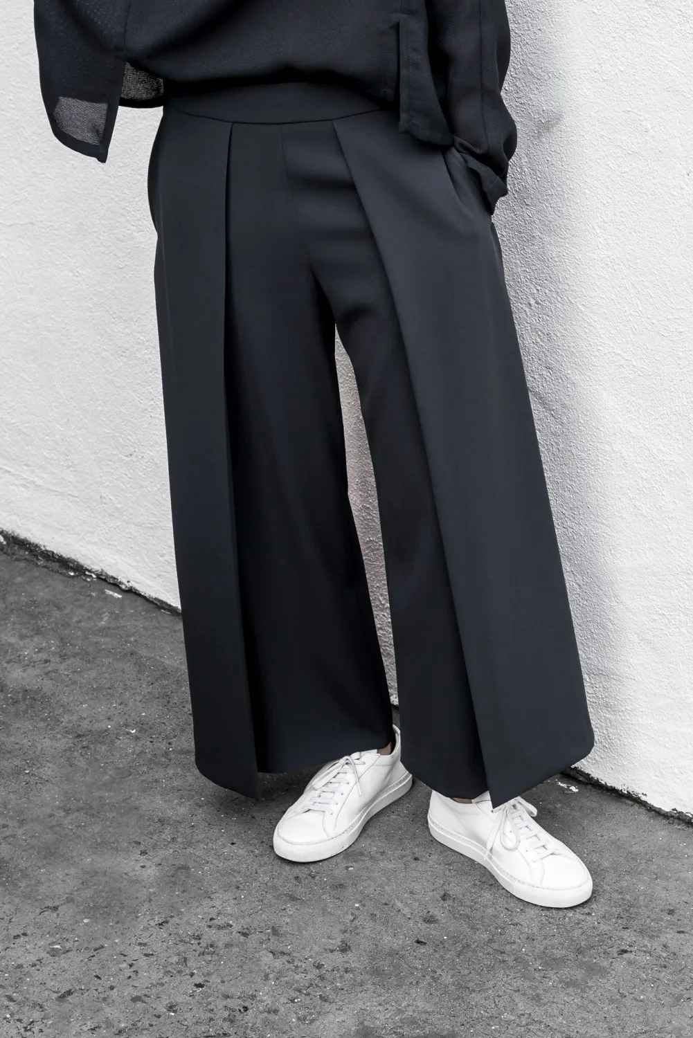 . (17% Off) Acheter AEL noir Double pont côté femme pantalon Large jambe 2018 printemps vêtements pour femmes grande taille mode dame pantalon droit Pas Cher Prix.