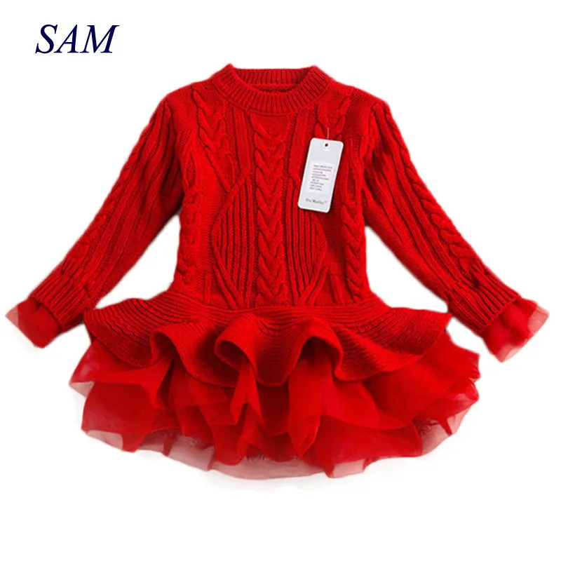 Product Name: Épais chaud fille robe 2018 noël robe de fête de mariage tricoté en mousseline de soie hiver enfants filles vêtements enfants vêtements fille robe