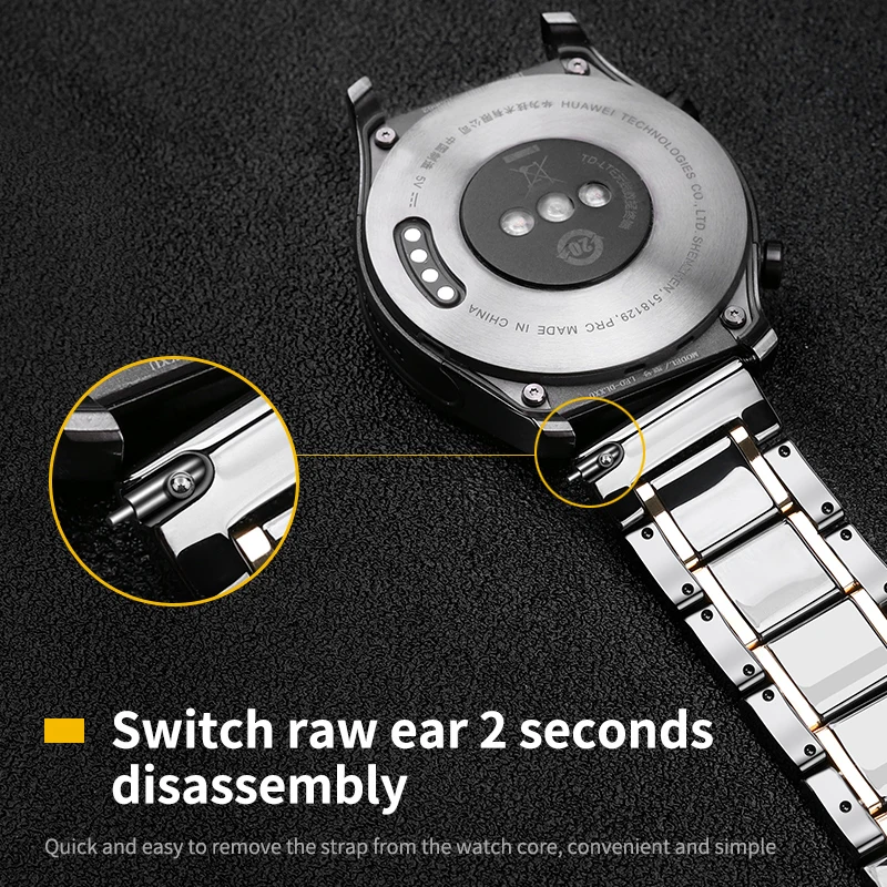 Product Name: 22mm bracelet en céramique pour Huawei montre GT GT 2 bande de haute qualité surface lisse en céramique bracelet de remplacement papillon boucle bande