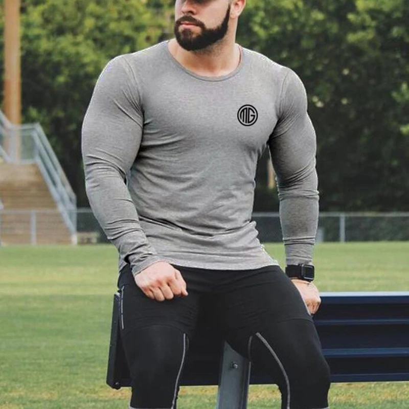 Product Name: Musclegars marque 2018 vêtements de mode couleur unie à manches longues Slim Fit t shirt hommes coton T Shirt style décontracté vêtements de sport gymnases t shirts