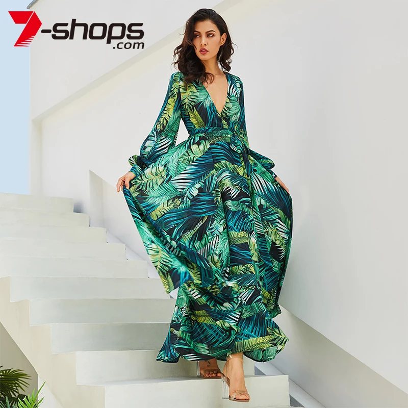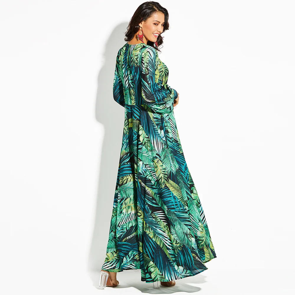 Special Offer 2019 à manches longues Maxi robe femmes profonde col en V robe de soirée à lacets Sexy dames Boho plage longues robes de grande taille robe d été Discount 32% Today!