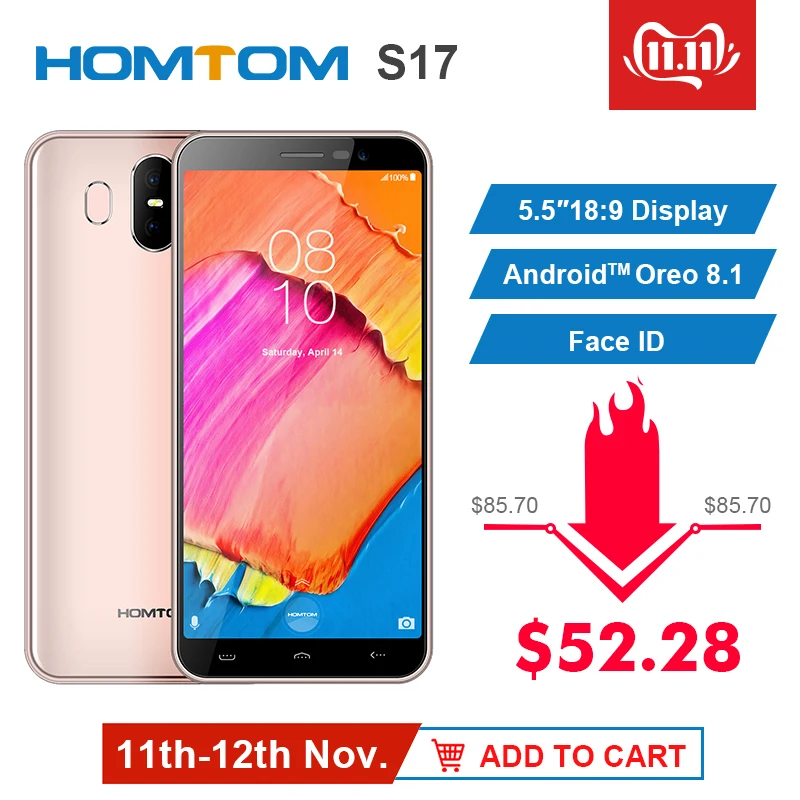 Special Offer HOMTOM S17 Android 8.1 Quad Core 5.5 \"189 affichage complet Smartphone empreinte digitale visage ID 2 GB RAM 16 GB ROM 13MP + 8MP téléphone portable Discount 34% Today!
