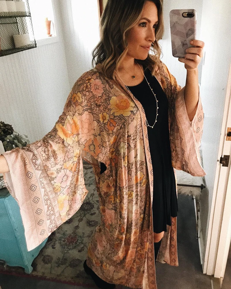Product Name: TEELYNN Kimono Cardigan longue femmes robe 2019 imprimé floral Boho blouse et chemise plage porter d été femmes blouses tsigane wrap Blusa