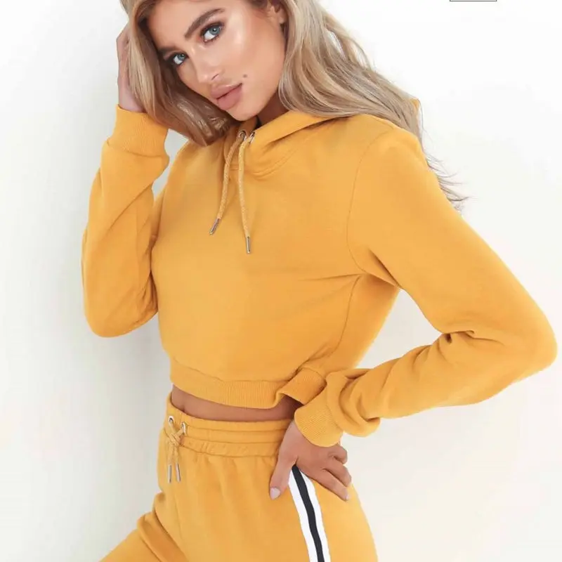 Product Name: Z P 2019 survêtement 2 pièces femmes ensemble sweats à capuche haut court sweat + côté rayure pantalon à capuche 2 pièces ensembles femmes vêtements costumes femme