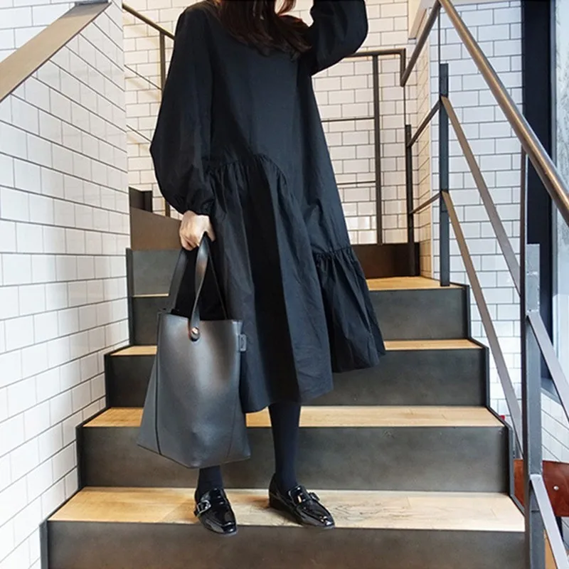Special Offer CHICEVER printemps automne robes pour femmes O cou manches bouffantes en vrac Patchwork noir robe femme vêtements surdimensionné mode nouveau 2019 Discount 40% Today!