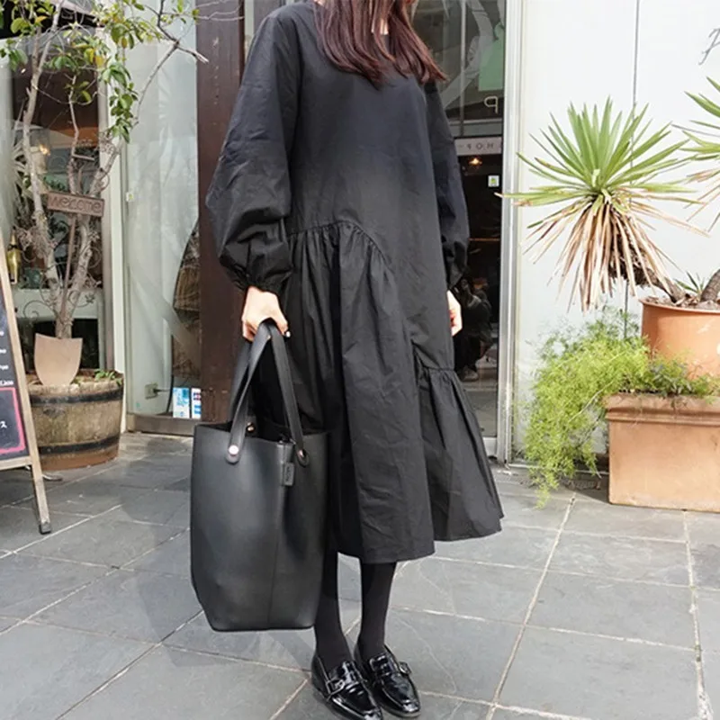 Product Name: CHICEVER printemps automne robes pour femmes O cou manches bouffantes en vrac Patchwork noir robe femme vêtements surdimensionné mode nouveau 2019
