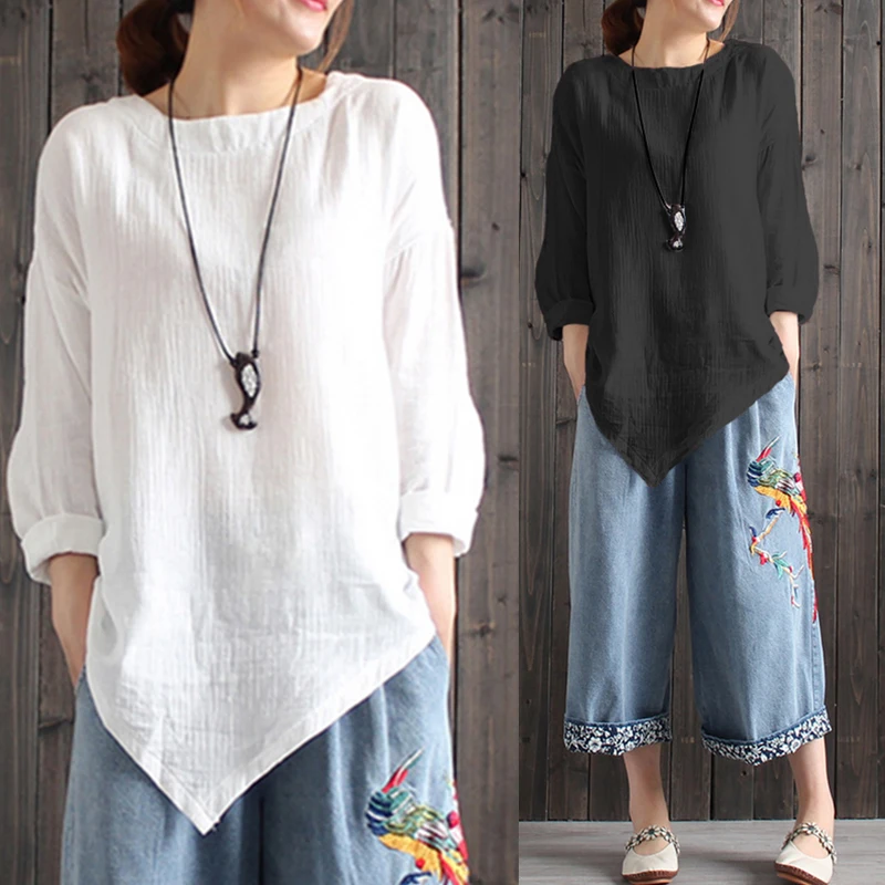 Product Name: Celmia femmes Vintage coton linge Blouses 2019 automne manches longues grande taille chemises asymétriques hauts décontracté lâche Camisa Feminina