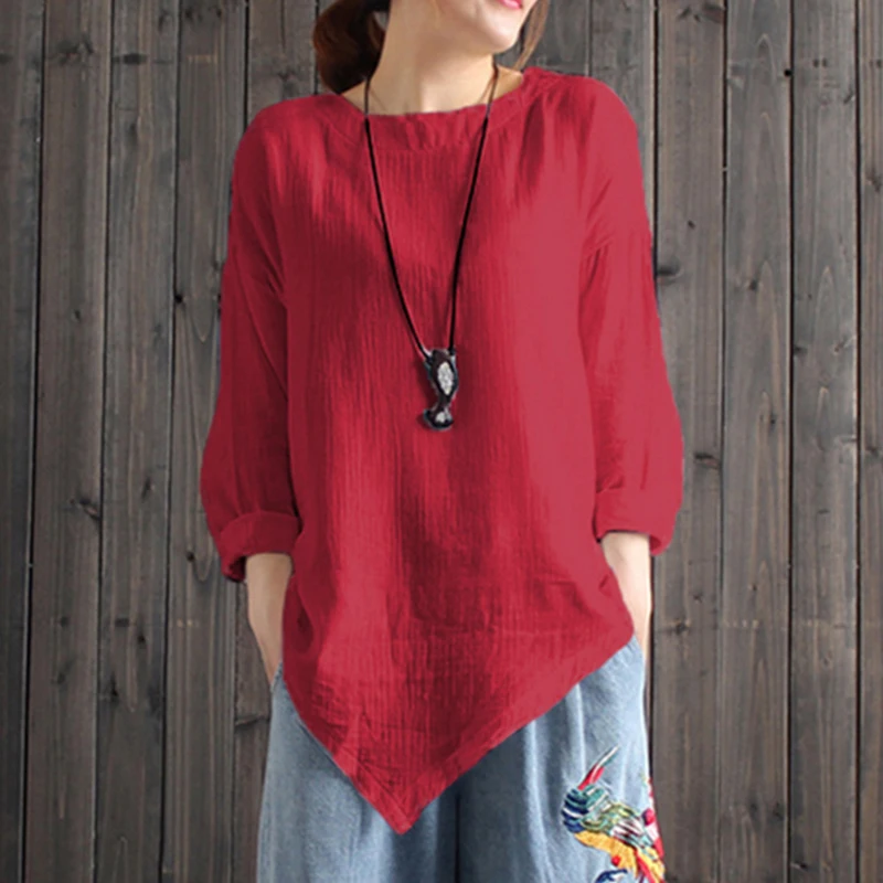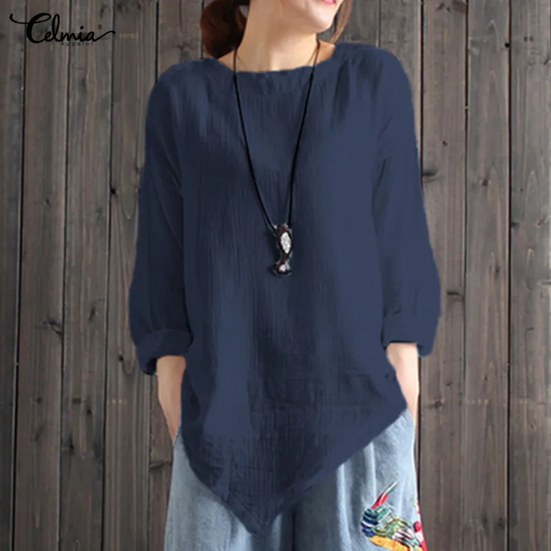 Special Offer Celmia femmes Vintage coton linge Blouses 2019 automne manches longues grande taille chemises asymétriques hauts décontracté lâche Camisa Feminina Discount 46% Today!