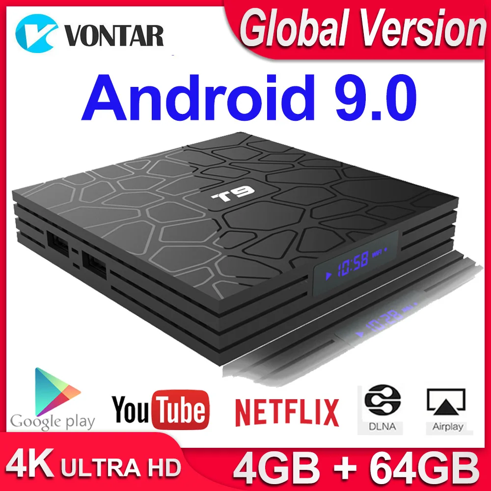 Special Offer Android 9.0 TV BOX T9 Smart TV Box 4K Quad Core lecteur multimédia 4GB RAM 32 GB 64 GB ROM H.265 2.4G 5G WIFI USB 3.0 TVbox décodeur Discount 49% Today!